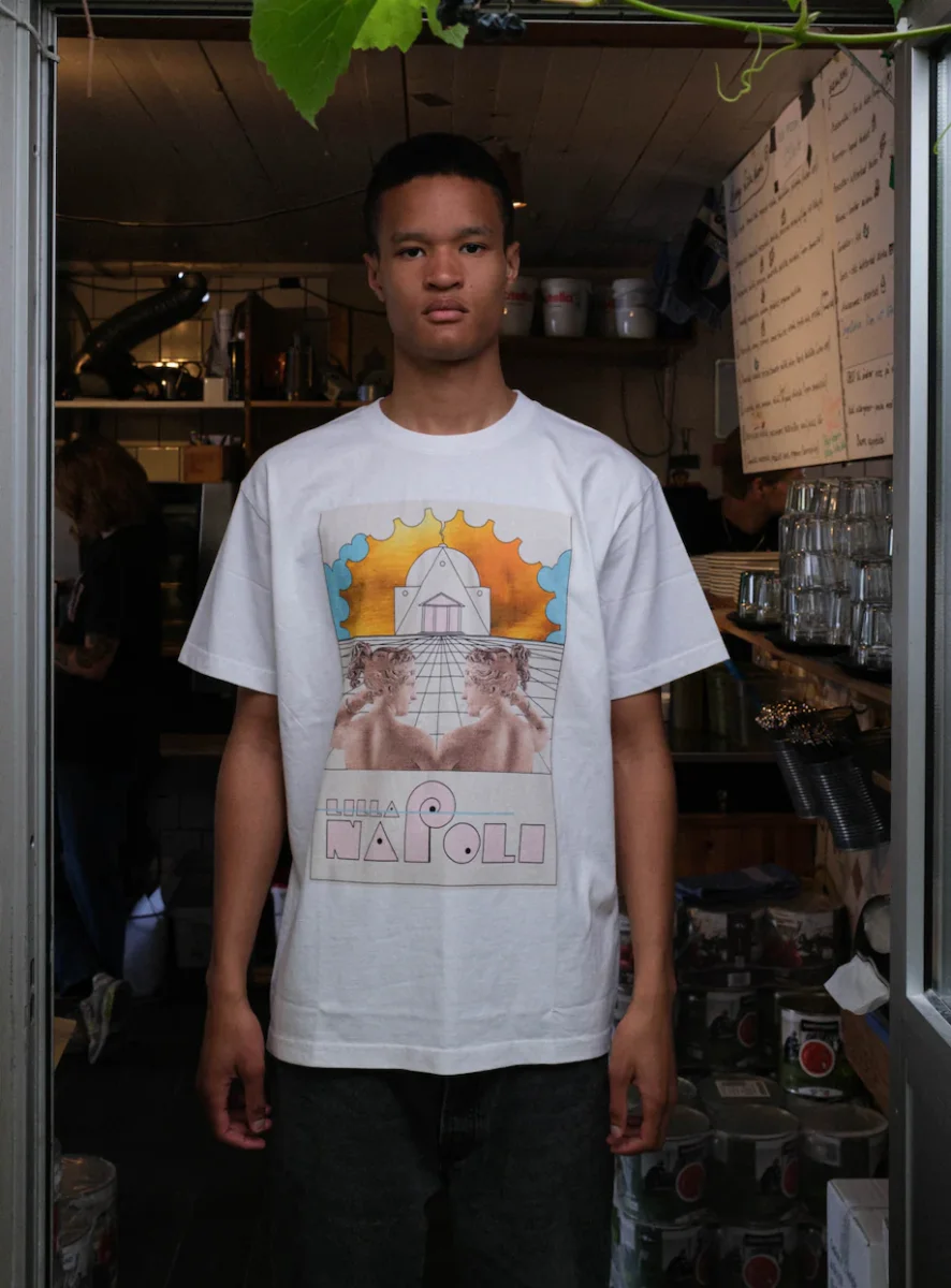 Vi har gjort allt med denna T-shirt. Från modell till färdig produkt. Den är exakt som vi vill ha den. Vi har även gjort den okrympbar med ett litet trick. Det gör att den inte vrider sig eller blir kortare även om den torktumlas. T-shirten är till för att hålla många år. Vi hoppas den blir snyggare med åren.