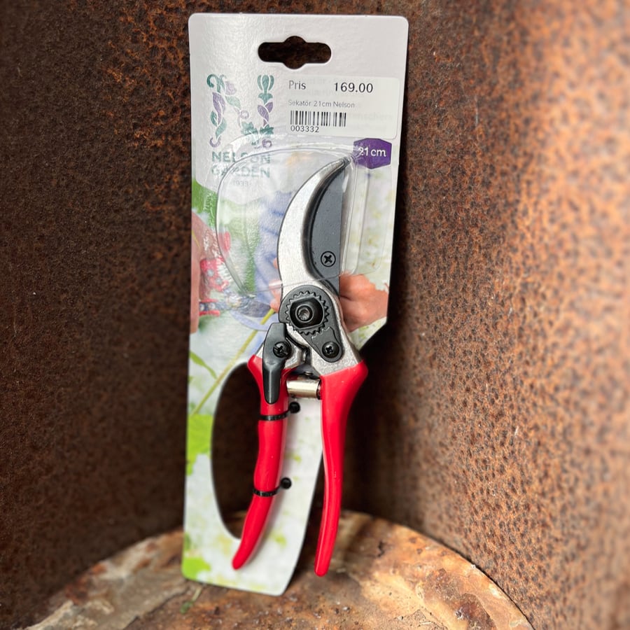 Sekatören är en klassisk, pålitlig modell med ett skär av teflonbelagt stål som är både motståndskraftigt mot kåda och rost. Skäret kan enkelt bytas ut vid behov, vilket förlänger verktygets livslängd. Den klarar grenar upp till 18 i diameter – perfekt för trädgårdens buskar och krukväxter. Med sina cirka 21 cm i längd och en bekväm form är sekatören enkel att hantera vid beskärning.